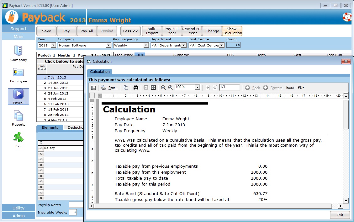 Some of the more complex calculations, especially for PRSI, often give different results depending on the method of calculation used. We have noticed that different payroll products will often give different results, especially when various ceilings are breached. Sometimes these differences can be significant, especially for highly paid monthly employees. We are fully confident that Payback calculates the figures correctly. In the past, when customers have queried the results, our support technicians have spent hours manually calculating PRSI, USC, Income Levy and PAYE, this always confirms that Payback is correct. Often the customer is using incorrect rates or making incorrect assumptions. Sometimes the customer is using an equally valid, but different method to calculate figures. Due to the time consuming and resource intensive nature of these queries, we will no longer be doing this. |