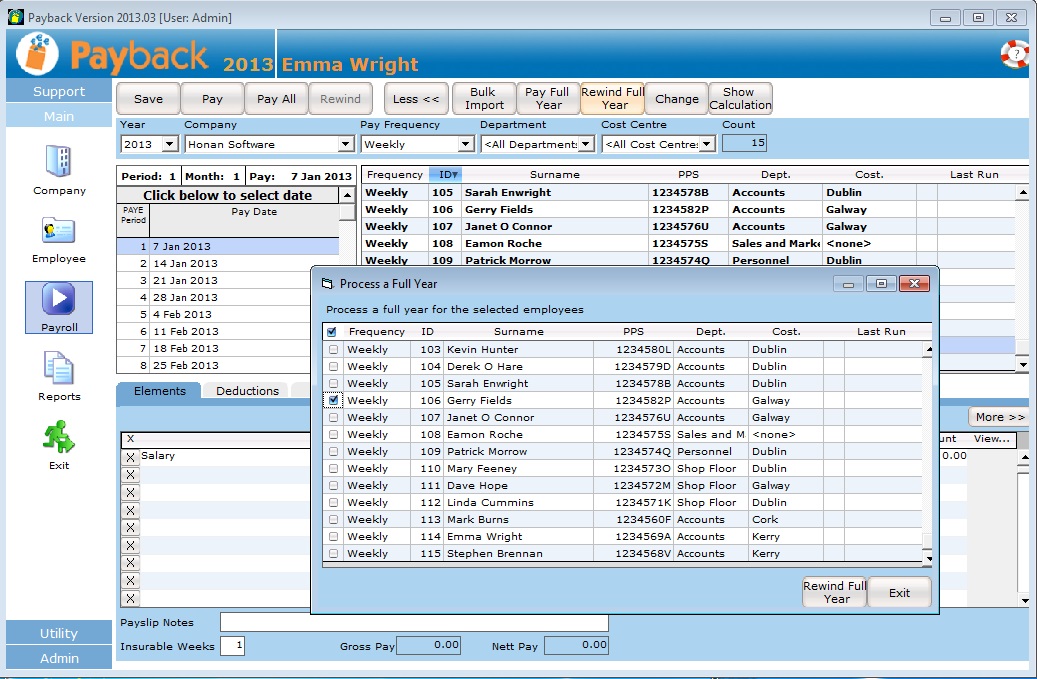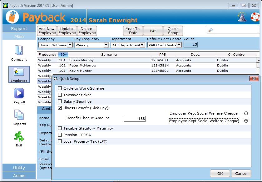 If you are running version 2015.02, then your payroll software is already up to date. You do not need to do anything else. We have released a new version for 2015. It can be downloaded from here: http://www.payback.ie/downloads/setup.exe IMPORTANT: Please back up your data before installing this update. (In Payback, click Admin / Backup / Backup and save the file somewhere like your desktop). Download and run the setup.exe file, and follow the on-screen instructions. This will update your software to v2015.02. If you start Payback and notice your payroll data is not present, then you can restore your data from the back up you made (click Admin / Backup / Restore). When you have successfully upgraded, the version number in the title bar at the top of the screen in Payback should say 2015.02. Use the 'Year' drop down list at the top left of the Payroll screen to select the new year. |