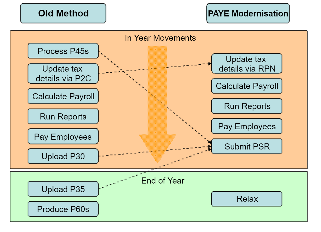 PAYE Modernisation is a new procedure for processing payroll. Instead of downloading or typing in Tax Credit (P2C) information, this is now downloaded from the Revenue Server. P2Cs or Tax Credit certificates are now called RPNs. When you have processed your payroll for a pay date, now you have to submit all the information to Revenue. P35s, P45s and P60s have been done away with for 2019 onwards (You still have to do P60s and P35 for 2018). Revenue will know when there is a employee leaving via the submission you make. There are two parts to PAYE Modernisation: