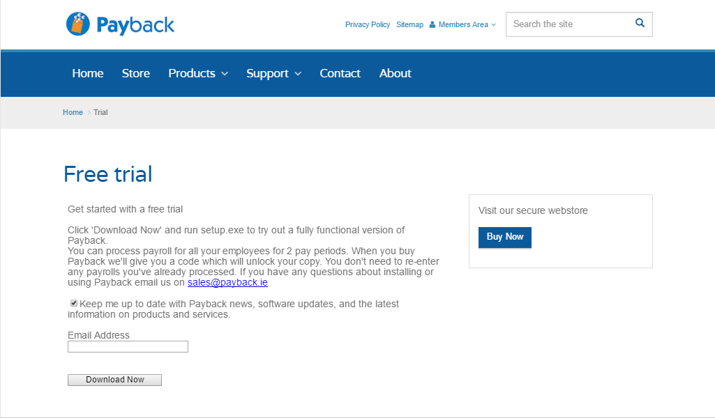 The Payback Download screen will appear (see below). Enter your email address and click the 'Download' button. Click the 'Save' option, if a 'run/save' message appears