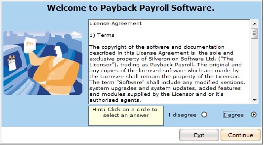 The Payback set up wizard will now run. Select 'I agree' and click 'Continue'