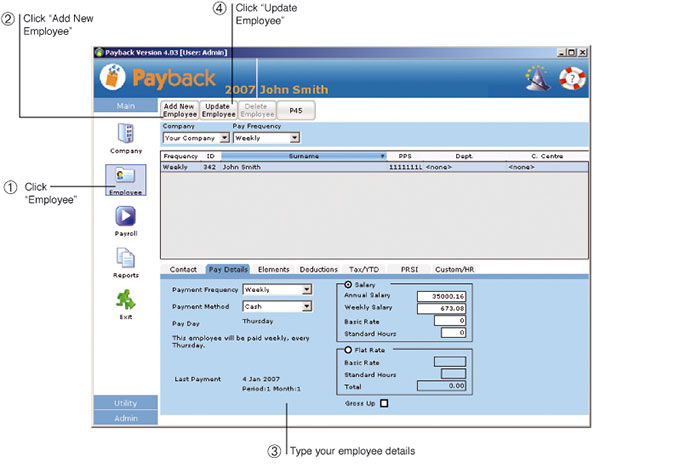 - The minimum amount of information you need to enter is the employee surname, although you should also supply the PPS Number, PRSI Class ('A' normally), and PAYE Tax credits and Standard rate cut off point if you know them.